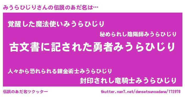 | ポケモン風あだ名 | 『ゼニミウ』『ヒミウラヒジリ』 |