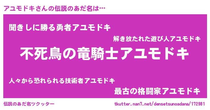 | ヒーロー風カッコイイあだ名 | 『スーパーアユモドキ』『仮面アユダー』 |
