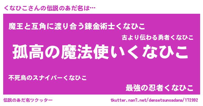 | 胡散臭い通販商品みたいなあだ名 | 『信頼と実績のサプリメント…その名も「くなひこ」』 |