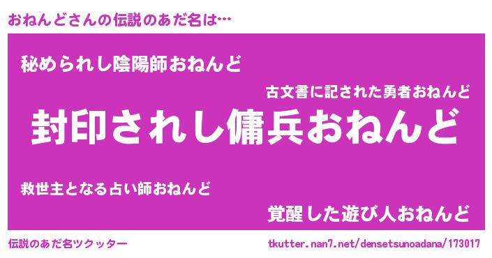 | ヒーロー風カッコイイあだ名 | 『スーパーオネンド』『仮面オネダー』 |