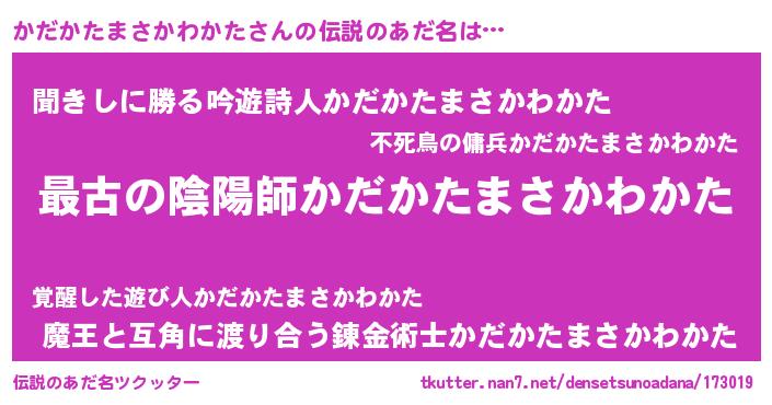| 欧米人風あだ名 | 『かだかたまさかわかたクリステル』 |