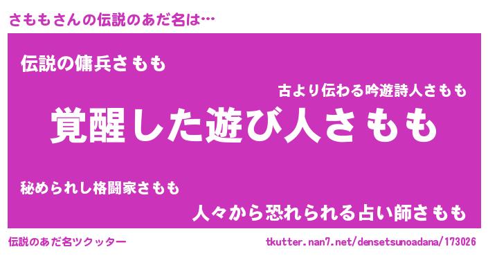 | 意味不明あだ名 | 『自称さもも』『とにかく怪しいさもも』 |