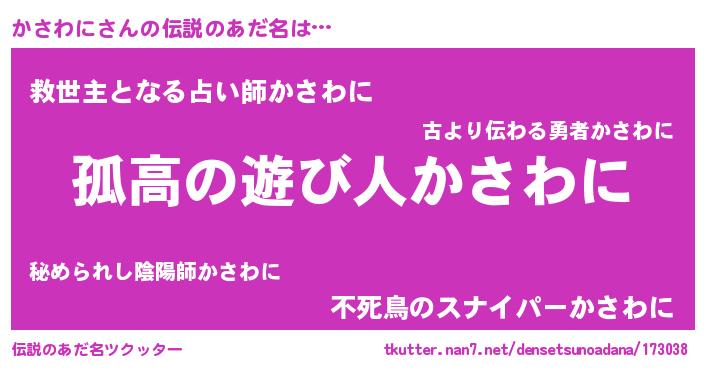 | 意味不明あだ名 | 『住所不定無職かさわに(81歳)』 |