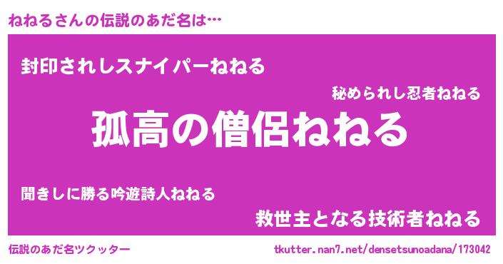 | 意味不明あだ名 | 『とにかく怪しいねねる』 |