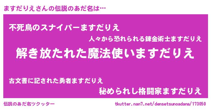 | 男性向けラノベタイトル風あだ名 | 『ますだりえの嫁は女の子じゃないと思った?』 |