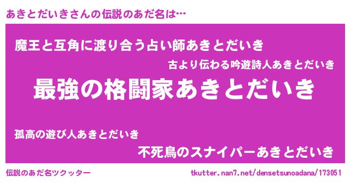 | 欧米人風あだ名 | 『あきとだいき・ステッグマイヤー』 |