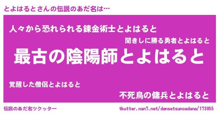 | ファンタジー風あだ名 | 『エターナルトヨハルトー』『ゼトヨトゥ』 |