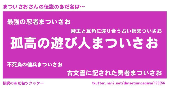 | ヒーロー風カッコイイあだ名 | 『暗黒騎士マツ』『究極戦士マツイサオ』 |