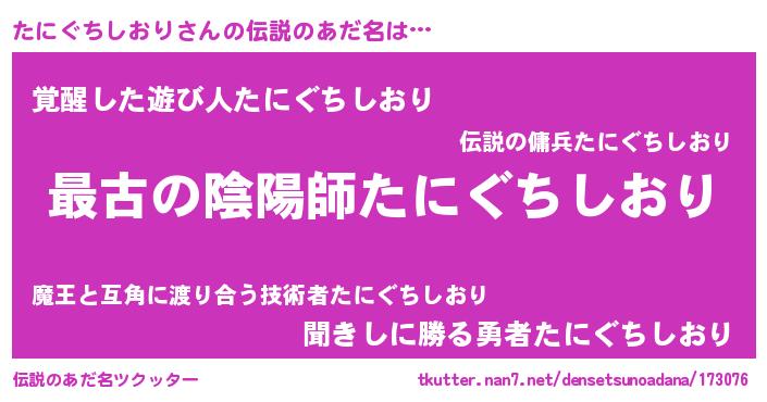 | 意味不明あだ名 | 『住所不定無職たにぐちしおり(98歳)』 |