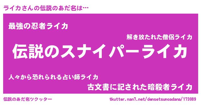 | 胡散臭い通販商品みたいなあだ名 | 『必ず成功する霊験あらたかなお札…その名も「ライカ」』 |
