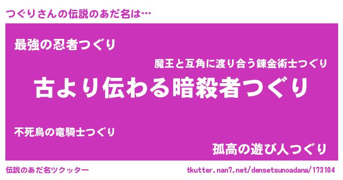 | 男性向けラノベタイトル風あだ名 | 『つぐりという概念が存在しない退屈な世界 』 |