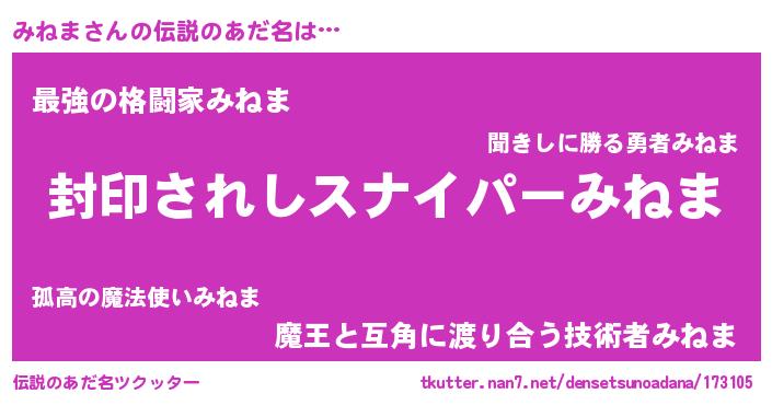 | 胡散臭い通販商品みたいなあだ名 | 『億万長者になれる霊験あらたかなお札…その名も「みねま」』 |