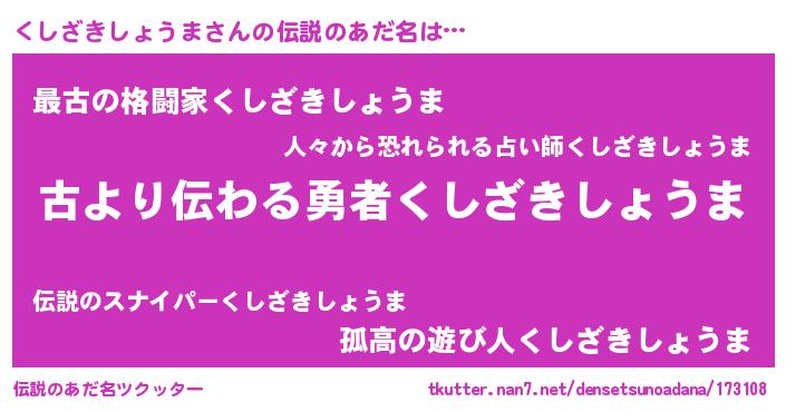 | 意味不明あだ名 | 『住所不定無職くしざきしょうま(71歳)』 |