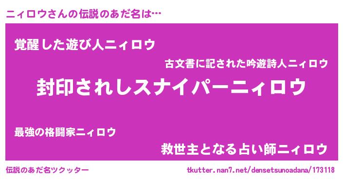 | ヒーロー風カッコイイあだ名 | 『仮面ニィダー』『スーパーニィロウ』 |