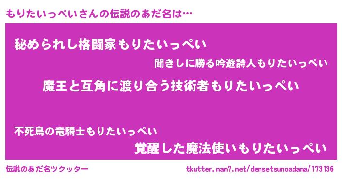 | 意味不明あだ名 | 『自称もりたいっぺい』 |