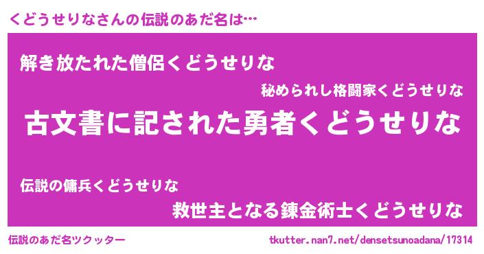 | 意味不明あだ名 | 『住所不定無職くどうせりな(98歳)』 |
