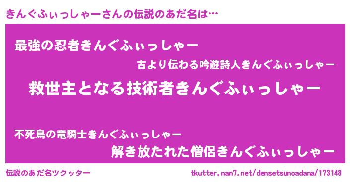 | 男性向けラノベタイトル風あだ名 | 『うちのきんぐふぃっしゃーが世界を掌握している!』 |