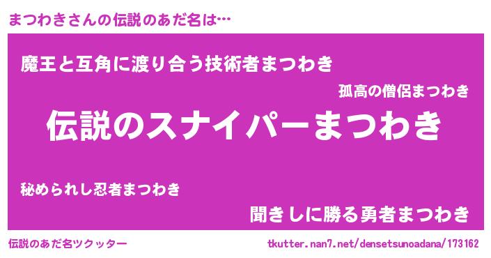 | 意味不明あだ名 | 『住所不定無職まつわき(98歳)』 |