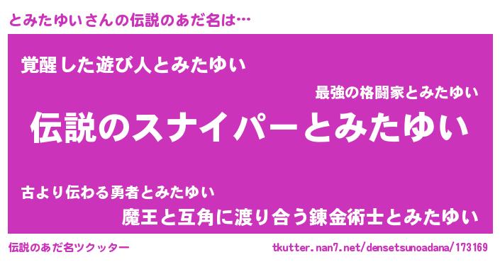 | 胡散臭い通販商品みたいなあだ名 | 『必ず成功する霊験あらたかなお札…その名も「とみたゆい」』 |