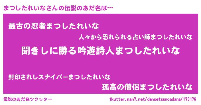 | 胡散臭い通販商品みたいなあだ名 | 『ガンによく効く高麗人参…その名も「まつしたれいな」』 |