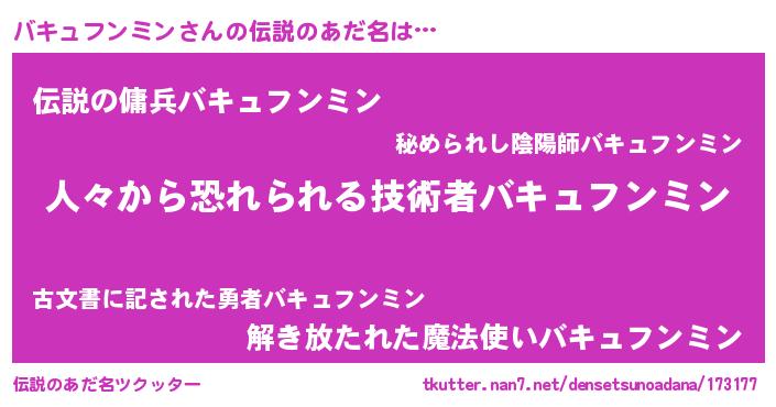 | ヒーロー風カッコイイあだ名 | 『正義の使者バキュフンミン』 |