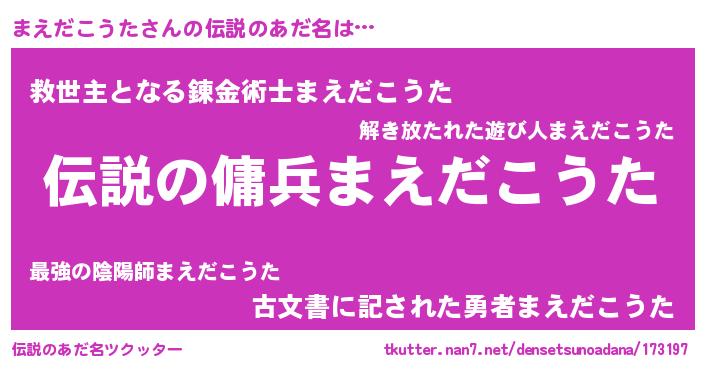 | 意味不明あだ名 | 『住所不定無職まえだこうた(43歳)』 |