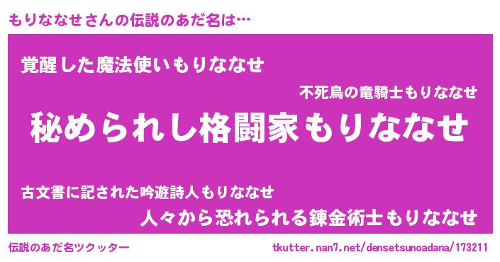 | ヒーロー風カッコイイあだ名 | 『ウルトラもりななせマン』 |