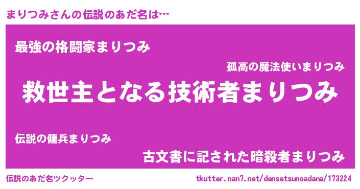 | ヒーロー風カッコイイあだ名 | 『究極戦士マリツミ』『仮面マリダー』 |
