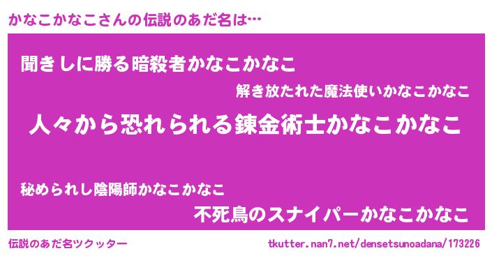 | 欧米人風あだ名 | 『アンジェラ・かなこかなこ』 |