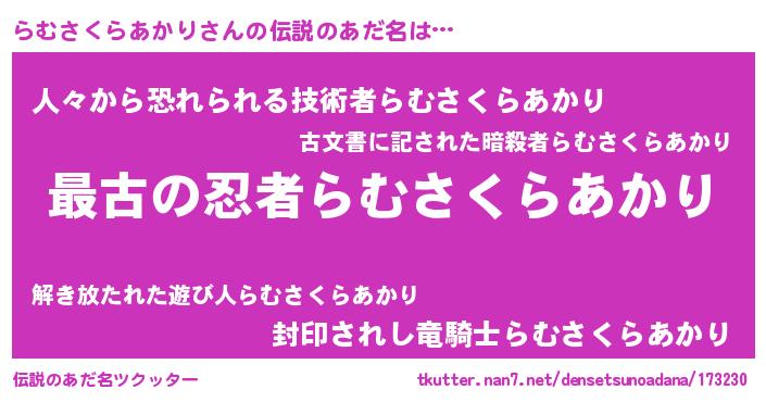 | 欧米人風あだ名 | 『らむさくらあかりクリステル』 |