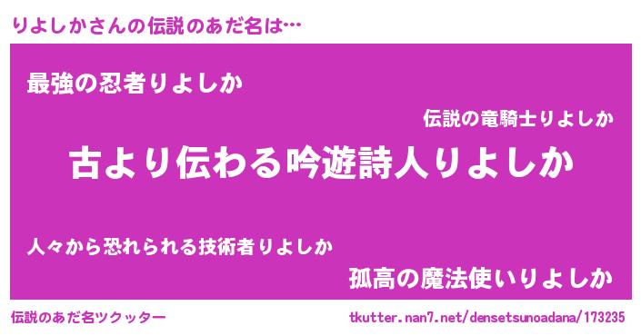 | ヒーロー風カッコイイあだ名 | 『仮面リヨダー』『ネオリヨシカ』 |
