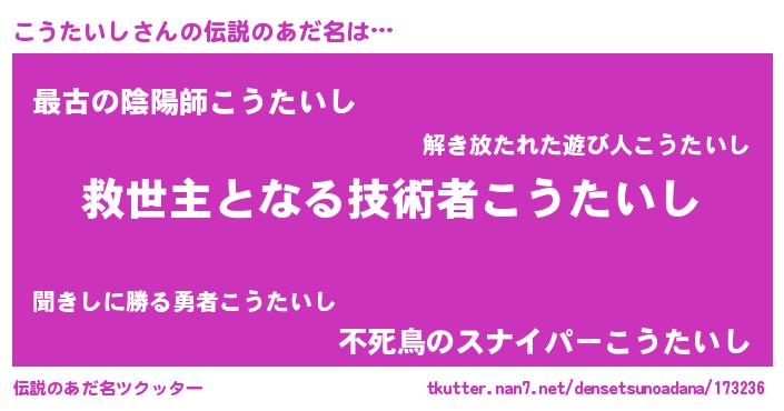 | ヒーロー風カッコイイあだ名 | 『慈愛の使者こうたいし』『仮面コウダー』 |