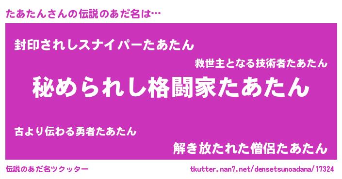 | 男性向けラノベタイトル風あだ名 | 『緋弾のタアタン』『タアタンスレイヤー』 |