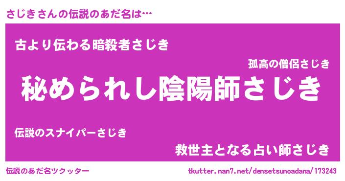 | 女子向けラノベタイトル風あだ名 | 『さじきの雑貨屋さん』『さじき恋絵巻』 |