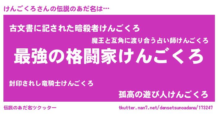 | ファンタジー風あだ名 | 『エターナルケンゴクロー』 |