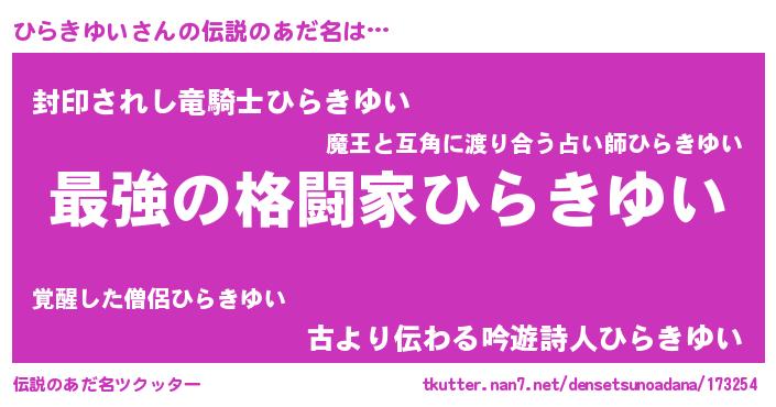 | ファンタジー風あだ名 | 『エターナルヒラキユイー』『ヒラフェル』 |