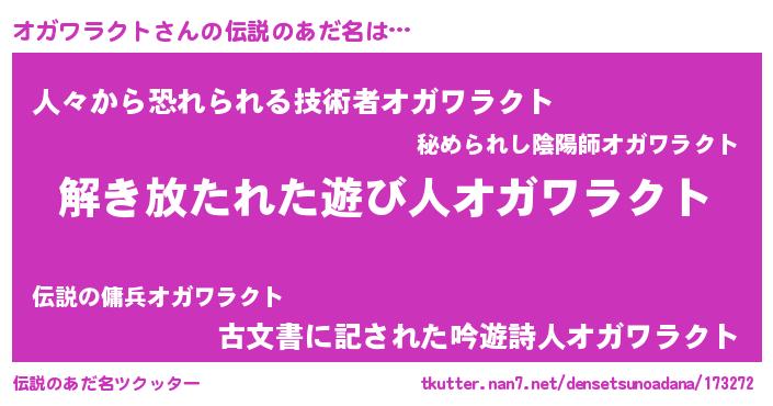 | 意味不明あだ名 | 『とにかく怪しいオガワラクト』 |
