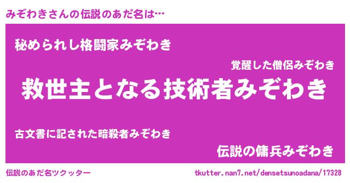 | ヒーロー風カッコイイあだ名 | 『天空の使者みぞわき』『仮面ミゾダー』 |