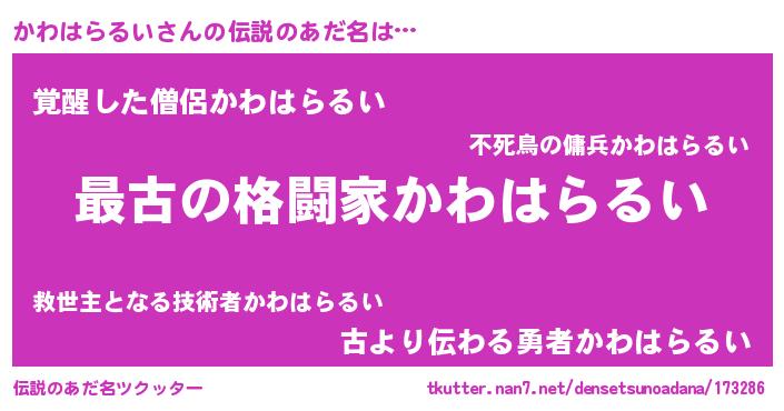 | 意味不明あだ名 | 『かわはらるいフォーエバー』 |