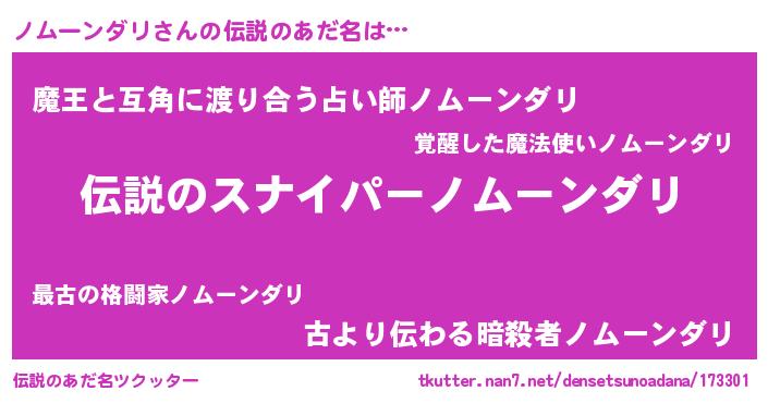 | 意味不明あだ名 | 『自称ノムーンダリ』 |