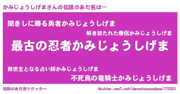 | 男性向けラノベタイトル風あだ名 | 『転生したらかみじょうしげまだった件』 |
