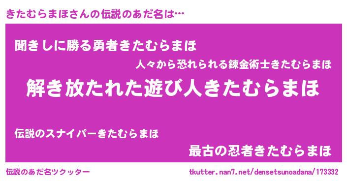 | ヘコむあだ名 | 『きたっちょ』『きたむらまほ(爆)』 |