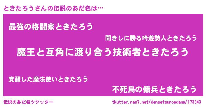 | 意味不明あだ名 | 『住所不定無職ときたろう(11歳)』 |
