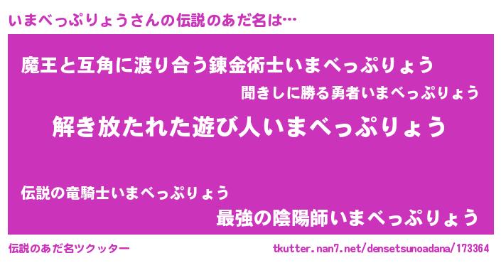| ポケモン風あだ名 | 『イマキング』『ヒイマベップリョウ』 |