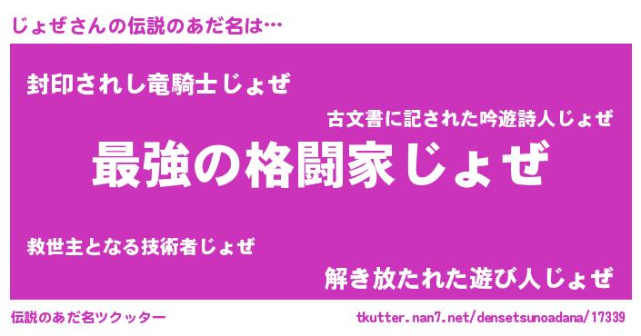 | ヒーロー風カッコイイあだ名 | 『究極戦士ジョゼ』『ウルトラじょぜマン』 |