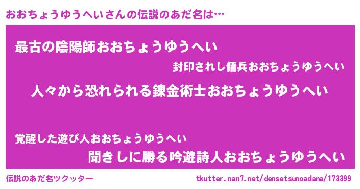 | 料理風あだ名 | 『おおちょうゆうへいごはん』 |