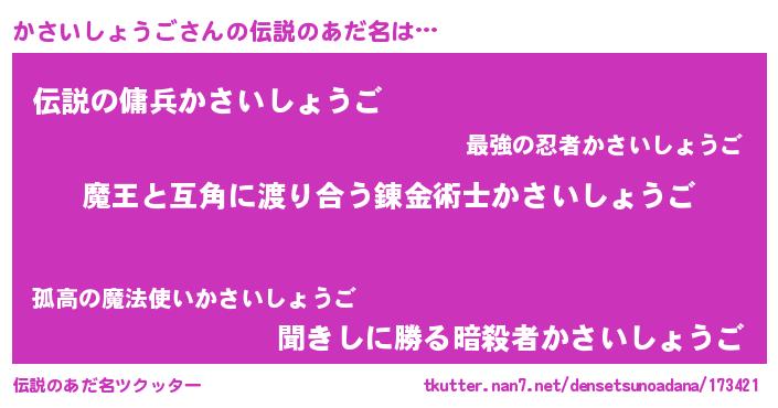 | 女子向けラノベタイトル風あだ名 | 『かさいしょうご恋絵巻』 |
