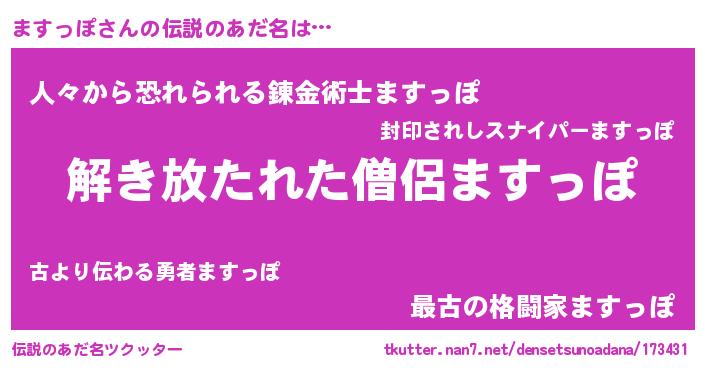| ヒーロー風カッコイイあだ名 | 『幻影騎士マス』『友情の使者ますっぽ』 |