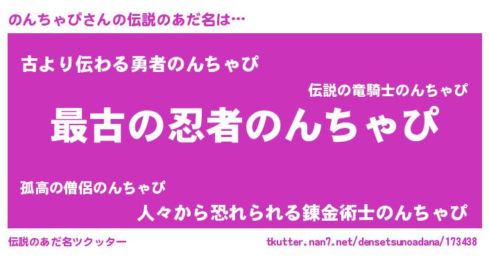 | 男性向けラノベタイトル風あだ名 | 『のんちゃぴに滅ぼされるだけの簡単なお仕事です』 |