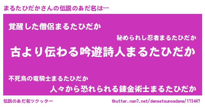 | 男性向けラノベタイトル風あだ名 | 『まるたひだかという概念が存在しない退屈な世界 』 |